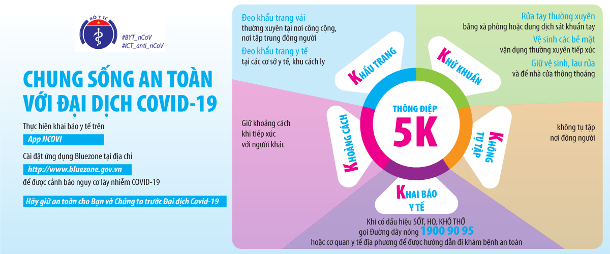 Thông điệp 5K: Khẩu trang - Khai Báo Y Tế - Khử khuẩn - Không tập trung